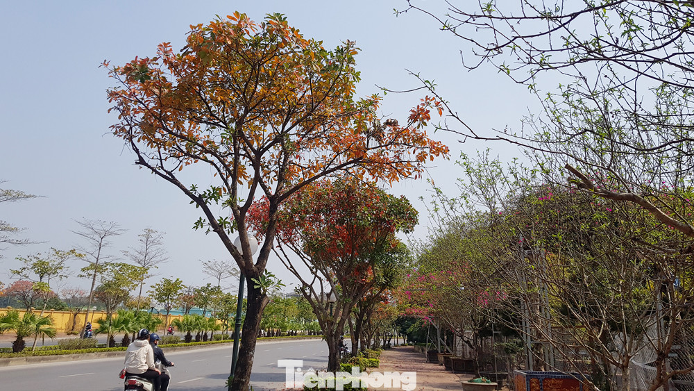 Phố phường Hà Nội những ngày tháng 2, mùa cây thay lá đẹp lạ bởi sắc vàng, đỏ, xanh đan xen của những tán cây đang vào mùa đâm chồi nảy lộc. Sắc màu ấy như kéo mọi người lắng lại giữa nhịp sống tất bật, hối hả thường ngày.