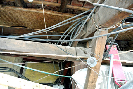 Những ngôi nhà này có thể nói còn tồi hơn... nhà tranh vách đất ở nhiều vùng quê. Khung gỗ của nhiều nhà đã bị mối mọt, gia chủ phải hàn thêm cọc sắt hai bên cho vững. “Tường nhà” được làm bằng cót ép, chỉ cần một cơn gió to cũng đủ thổi tung. Cả ngôi nhà là một khối những vật dụng rất dễ bắt lửa. Mái nhà thông thống ánh sáng soi khắp nơi.