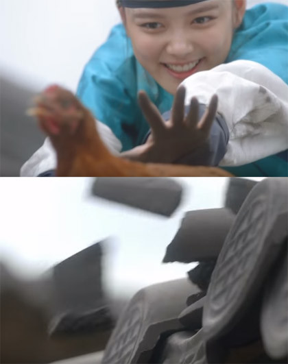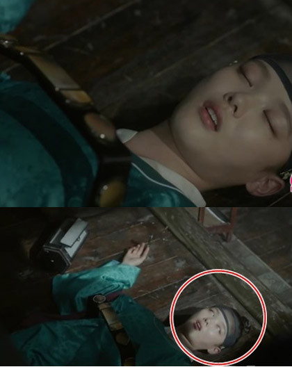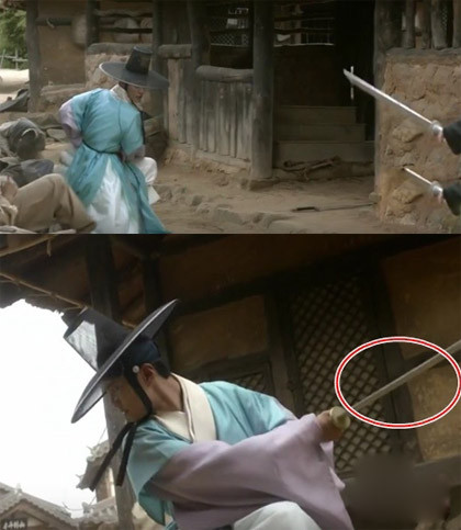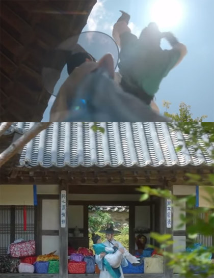 Đại nhân Kim Yoon Sung đứng dưới đỡ trọn cô nàng thái giám mà không hứng phải viên ngói nào. Khán giả cũng phát hiện mái nhà vẫn nguyên vẹn, hoàn toàn không có dấu hiệu ngói vỡ.