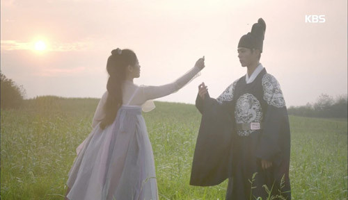 Trong một cảnh, Hong Ra On vì giải nguy cho thái tử phải hóa thân thành vũ nữ trước bá quan và sứ thần nhà Thanh. Hình ảnh khiến thái tử nhớ tới mẹ đồng thời tưởng tượng ra cảnh mình và cô gái đối diện nhau ở chốn không người. Ở góc quay thẳng, vũ nữ đeo khăn che mặt, chỉ để lộ phần mắt và trán.