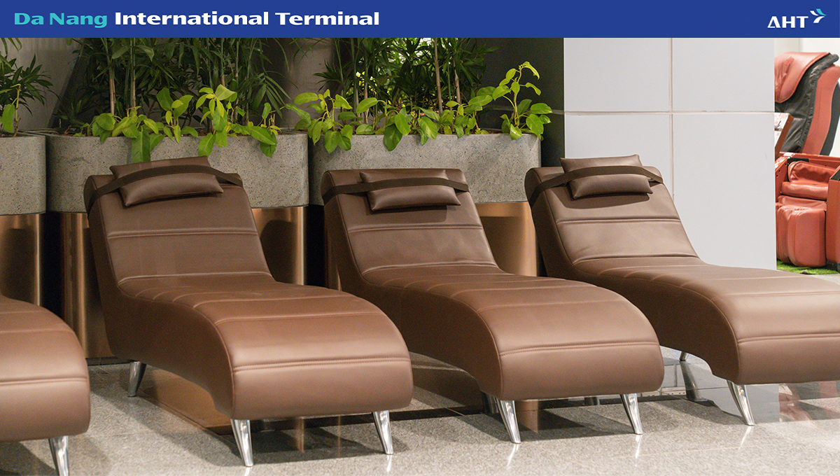 Một chỗ ngồi thoải mái, rộng rãi sẽ đem đến trải nghiệm khác biệt cho những khoảnh khắc trước chuyến bay. Tại nhà ga Quốc Tế Đà Nẵng, mỗi loại ghế ngồi đều được lựa chọn kỹ càng theo công năng và độ thoải mái trước các nhu cầu thư giãn, nghỉ ngơi, làm việc của hành khách, đặc biệt là tại khu vực phòng chờ thương gia. Ở khu vực gần cửa khởi hành, bên cạnh các băng ghế quen thuộc, hành khách có thể tìm thấy nhiều loại ghế thư giãn êm ái được bố trí khéo léo cùng các mảng xanh.