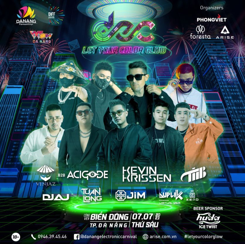 Riêng với những khán giả yêu âm nhạc sôi động thì không thể bỏ qua Danang Electronic Carnival (DEC) với chủ đề Let your color glow, diễn ra vào cuối tuần này (7/7) tại Công viên Biển Đông, thành phố Đà Nẵng. DEC cũng là một phần trong chuỗi sự kiện DIFF 2023. Diễn ra trước đêm Chung kết pháo hoa một ngày, DEC hứa hẹn là một đêm nhạc bùng nổ, giúp không khí lễ hội tháng 7 của thành phố biển thêm tưng bừng và sôi động.
