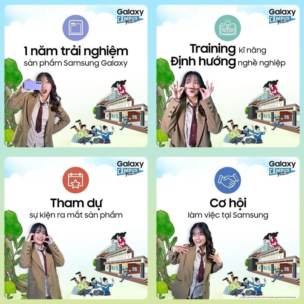 Hơn nữa, còn được tham gia vào các sự kiện công nghệ “chất lừ”, tầm cỡ trong nước và quốc tế như các chương trình ra mắt sản phẩm mới, các buổi giao lưu độc quyền, v.v. Việc tham gia các hoạt động này ngay từ khi còn đang là sinh viên sẽ là bước đệm vững chắc biến các bạn Galaxy Campus Friends dám thể hiện chất riêng và cất cao tiếng nói, nâng tầm ảnh hưởng của bản thân…