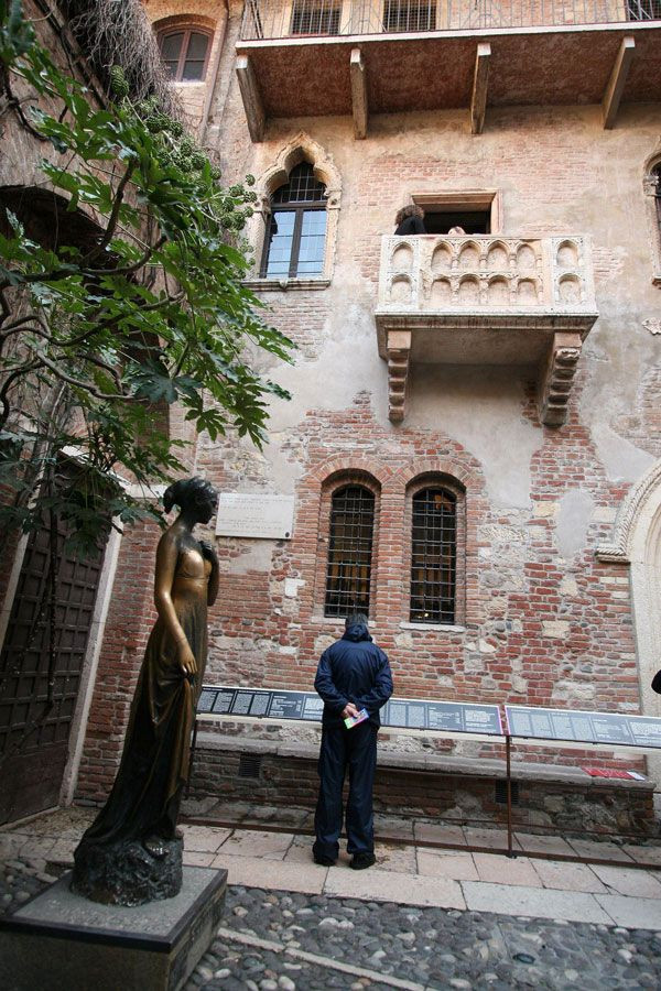 Mỗi năm, hàng chục ngàn người hâm mộ bị quyến rũ bởi câu chuyện tình huyền thoại của Shakespeare. Du khách đổ xô đến ngắm ban công tỏ tình của Romeo và Juliet . Trong thực tế, chiếc ban công không tồn tại ở thế kỷ 15, thời đại của Shakespeare. Tận thế kỷ 17 ban công này mới được xây bởi những người ghé thăm Verona để tô hồng chuyện tình theo ý của họ. Chẳng ai để ý đến chi tiết bịa thêm này, các cặp đôi vẫn mê mải dùng kẹo cao su gắn giấy nhắn viết tên mình lồng trong trái tim.