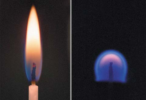 Mặc dù vậy, khi không có trọng lực (như trong không gian), không khí nóng giãn nở đối mặt với "sự đối kháng" ngang bằng nhau ở mọi hướng, và do đó ngọn lửa tỏa thành hình cầu ra ngoài nguồn phát sáng.