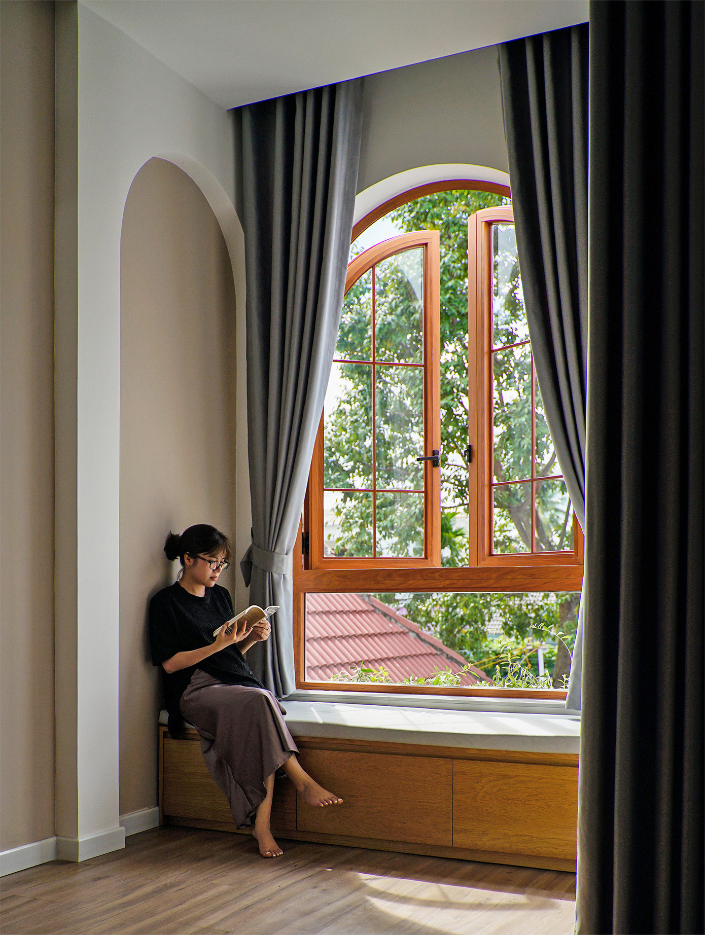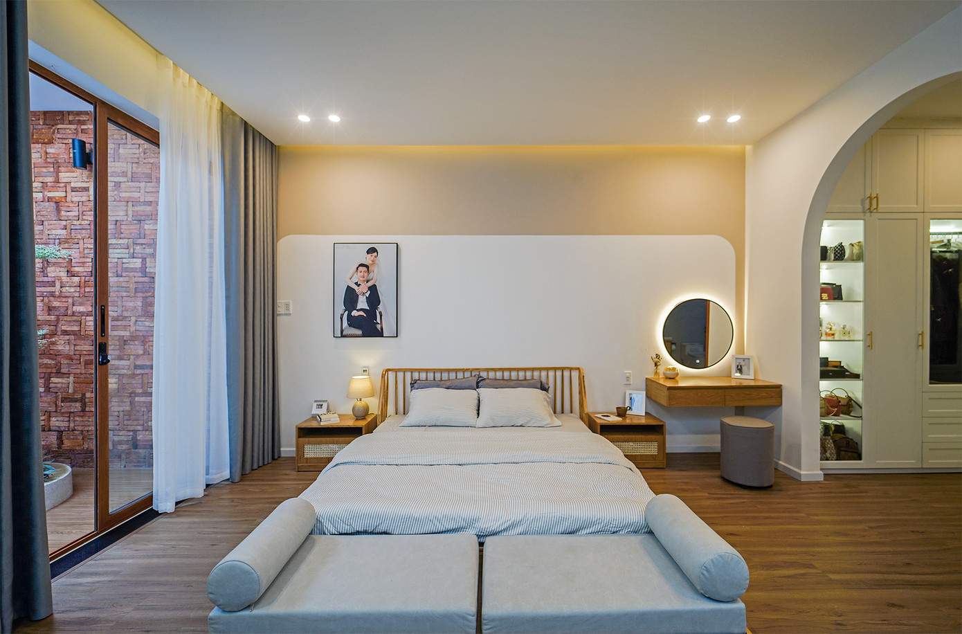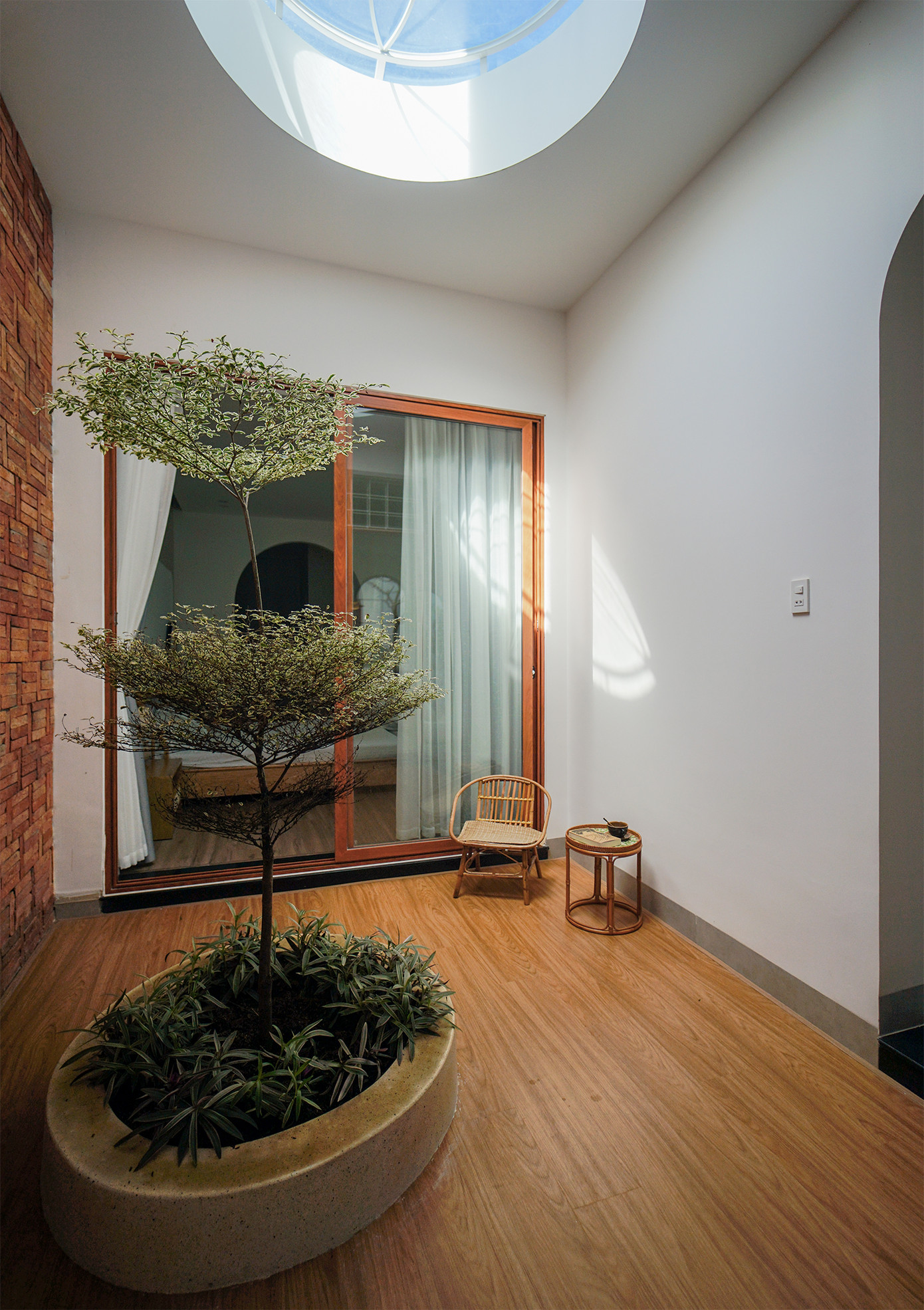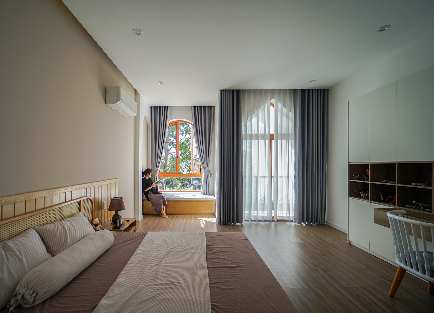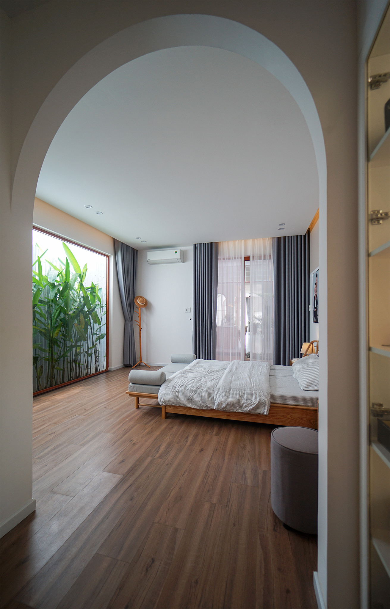 Mỗi không gian phòng ngủ đều được thiết kế một khoảng giếng trời để đưa cây xanh vào trong đồng thời lấy sáng tự nhiên, dịu mát đôi mắt và chữa lành tâm trí.