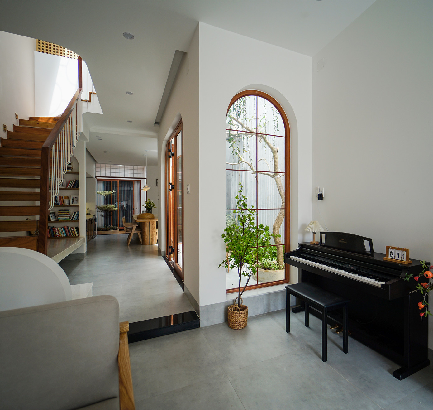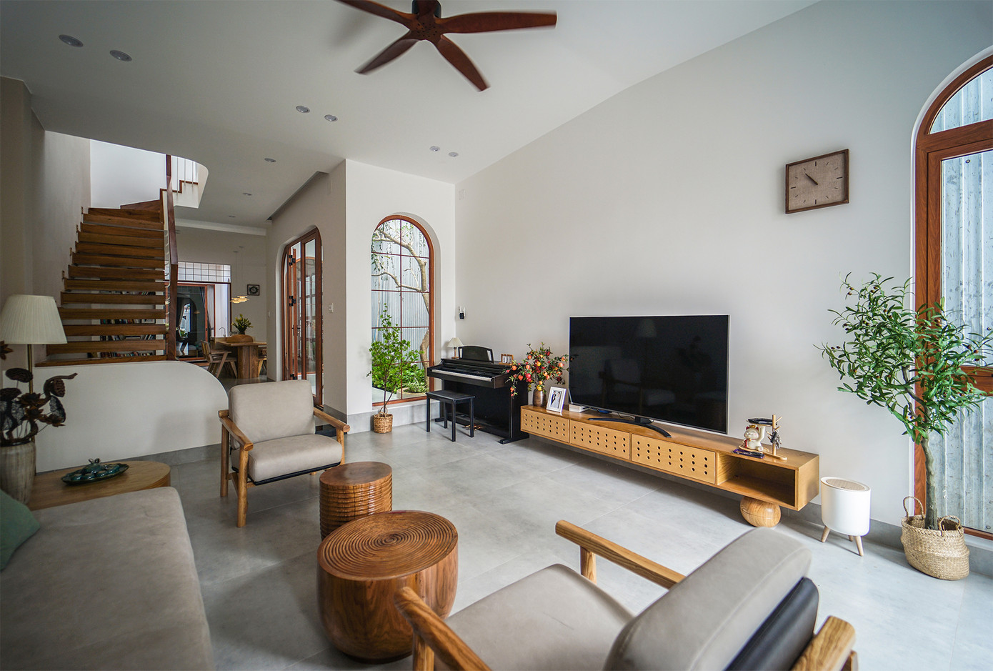 TPO - Với những đường cong nhẹ nhàng từ bên ngoài mặt tiền tới cả nội thất bên trong, pha cùng với màu sắc nội thất trung tính, căn nhà phố trở nên nhẹ nhàng, ấm cúng và nổi bật hơn hẳn trong cảnh quan chung.