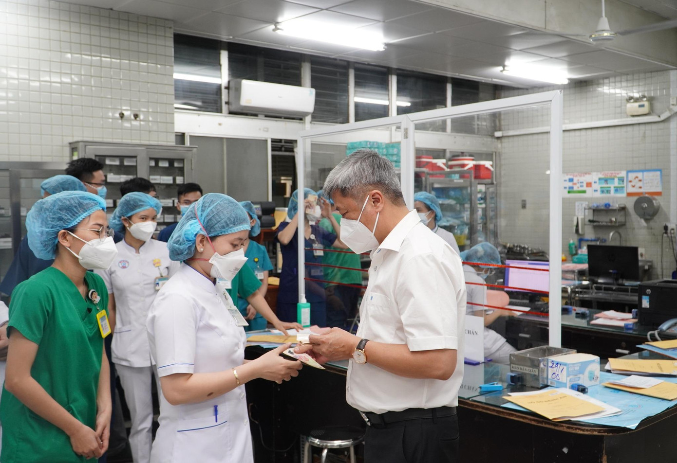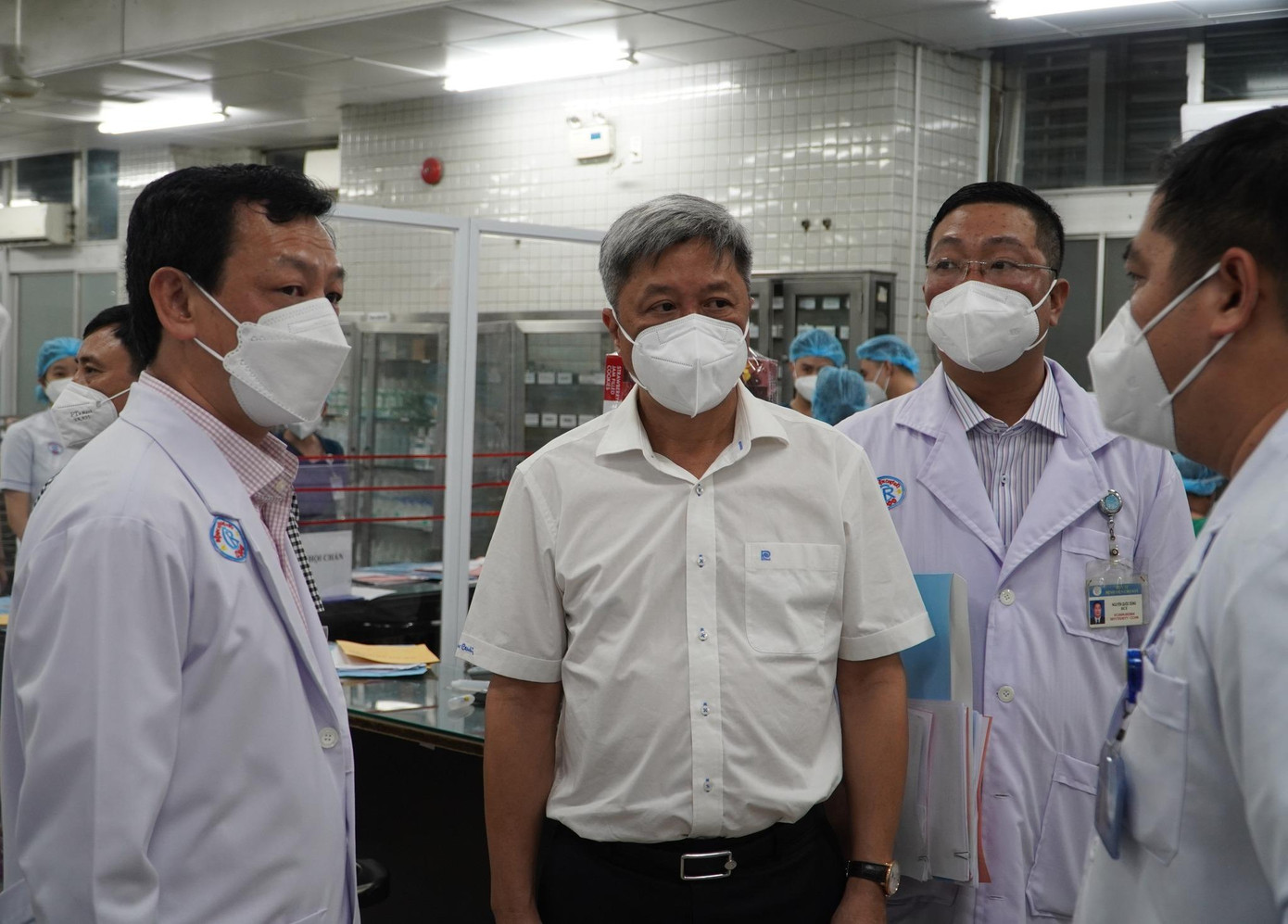 Trước thời điểm giao thừa, PGS.TS Nguyễn Trường Sơn, Thứ trưởng Bộ Y tế đã đến chúc Tết và động viên tinh thần các chiến sĩ áo trắng đang ngày đêm chăm sóc bệnh nhân tại khoa Cấp cứu, Bệnh viện Chợ Rẫy, TPHCM.
