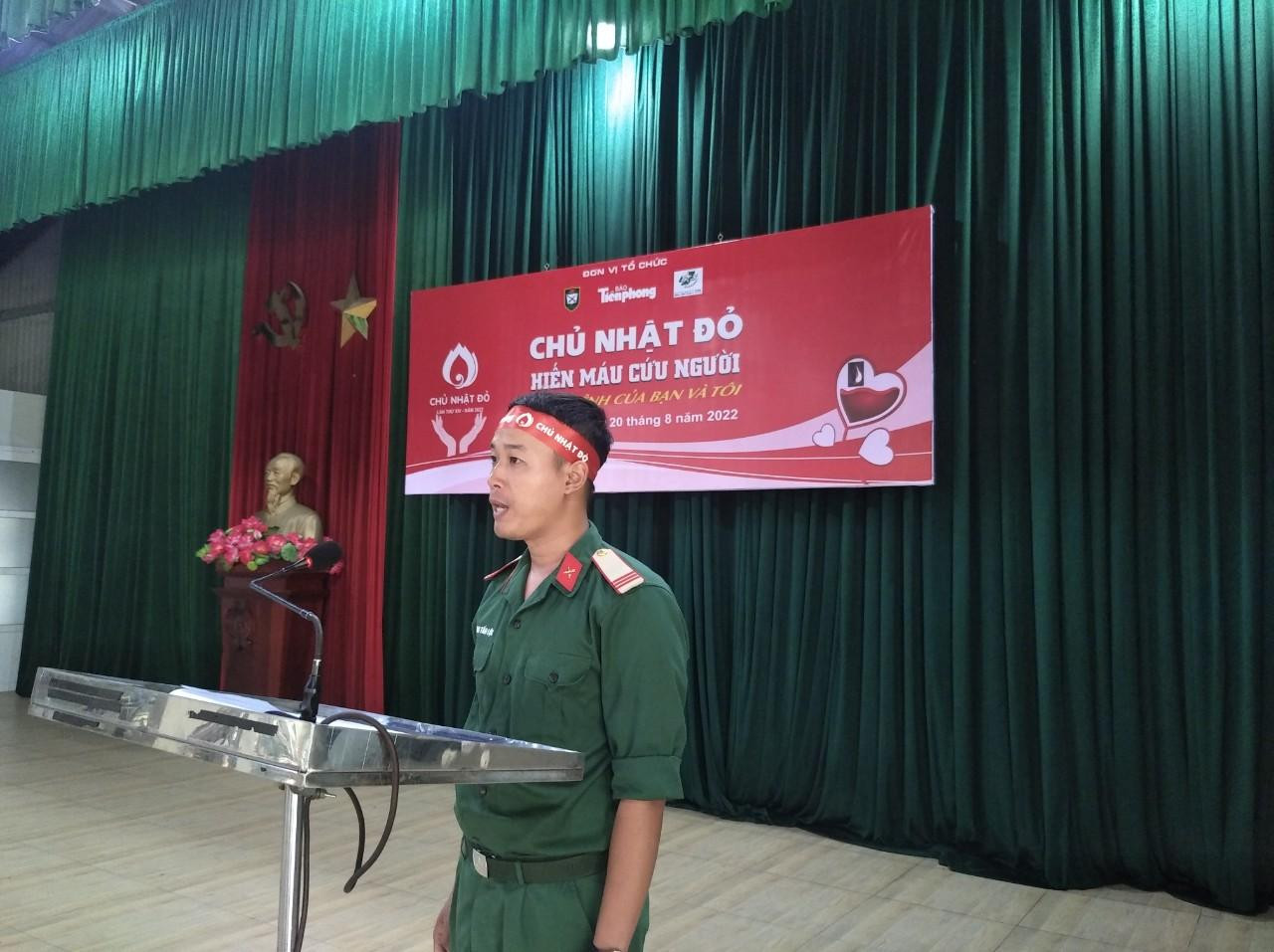 Phát biểu tại chương trình, Đại tá Hà Công Chờ, Phó Chính ủy trường Quân sự Quân khu 7 chia sẻ: “Hiện nay, nhiều người bệnh đang đối mặt với hiểm nguy đến tính mạng do không có đủ máu điều trị kịp thời. Do đó, nếu mỗi người chúng ta hiến một phần máu của mình là có thể góp phần cứu được tính mạng của người khác”.