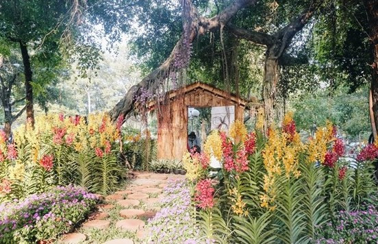 Một căn nhà lá đơn sơ giữa rừng hoa