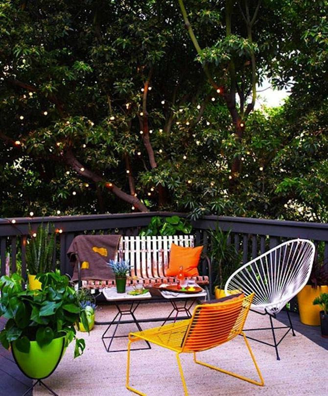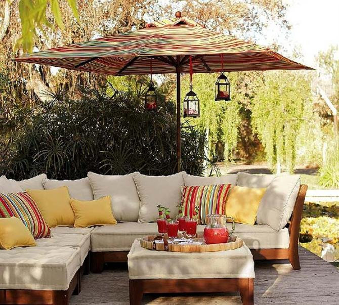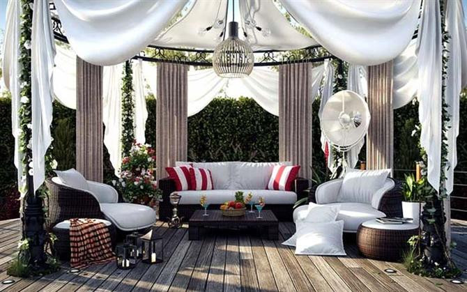 Với một chiếc bàn nhỏ, vài chiếc ghế êm ái và dù, bạt che (nếu cần), bạn và người thân đã có một nơi giải trí thân thiện và hữu ích. Không gian này có thể được đầu tư với mái che kiên cố (nếu thiết kế trong sân vườn) và những phụ kiện trang trí đẹp mắt như cây xanh, chậu hoa, lồng đèn...