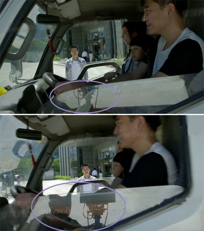 Phim "Mẹ hổ bố mèo" có cảnh máy quay và nhà quay phim phản chiếu trên cửa kính ô tô.