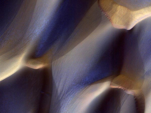 Hình ảnh sương mù trên bề mặt sao Hỏa do Cơ quan hàng không vũ trụ Mỹ (NASA) chụp lại. Tại đây, lớp sương Carbon Dioxir tập hợp thành từng lớp bồng bềnh. Nhìn toàn cảnh, khu vực không gian này như một sa mạc cát.
