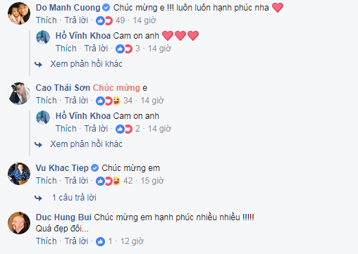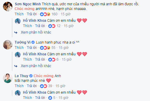 Nhiều sao Việt gửi lời chúc phúc tới Hồ Vĩnh Khoa và bạn trai Rhonee Rojas.