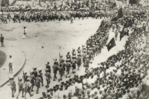 Duyệt đội quân du kích ở các chiến khu về Hà Nội ngày 30/8/1945.
