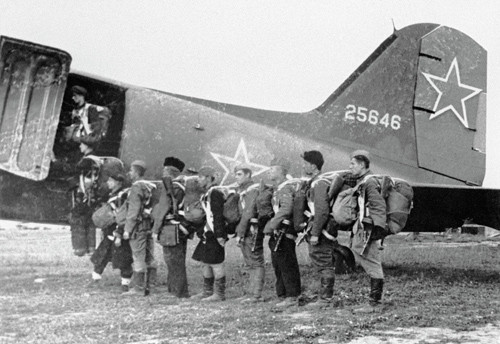Lính dù Liên Xô lên máy bay chuẩn bị đổ bộ đường không vào sau lưng địch, hỗ trợ cuộc Tổng khởi nghĩa ở Slovak năm 1944.
