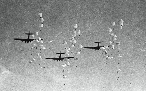 Lực lượng đổ bộ đường không của quân đội Liên xô được thành lập vào ngày 2/8/1930. Trong ảnh là một cuộc nhảy dù trình diễn của lực lượng nhảy dù Liên Xô.