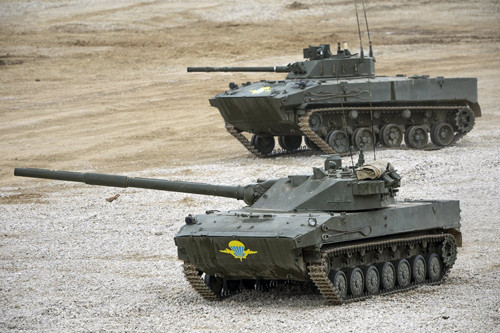 Pháo tự hành 2S25 Sprut-SD được thiết kế cho lực lượng nhảy dù. Trong ảnh là một khẩu pháo tự hành 2S25 trưng bày tại Diễn đàn kỹ thuật quân sự quốc tế Army-2015 tổ chức ở ngoại ô Moscow.