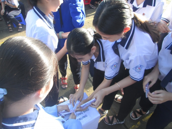 Teen THCS Lê Văn Tám (Sóc Trăng) tiết kiệm tiền tiêu vặt để quyên góp cho miền Trung.