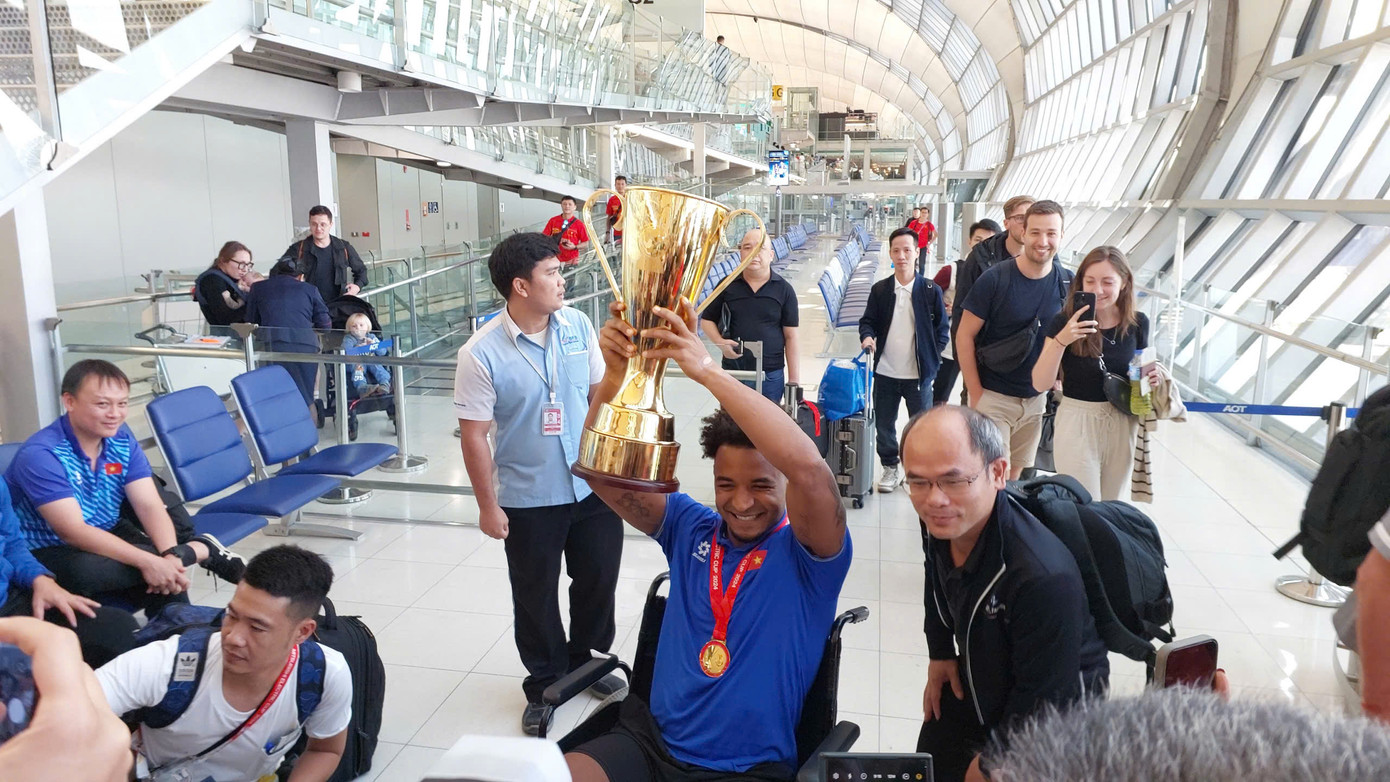 | Trưa 6/1 (giờ Hà Nội), tiền đạo Nguyễn Xuân Son được đưa ra sân bay tại Thái Lan, để cùng đồng đội trở về nước, sau khi giành chức vô địch ASEAN Cup 2024. |