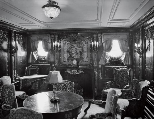 Một cần trục còn sót lại trên boong dạo mát. Hai cần trục nhỏ, mỗi cái ở một đầu, được dùng để hạ thủy một chiếc thuyền cứu sinh xuống biển. Chính thứ này đã giúp hạ thủy chiếc xuồng cứu hộ C, nơi J. Bruce Ismay - chủ tịch của công ty sở hữu Titanic - ngồi và an toàn sống sót.
