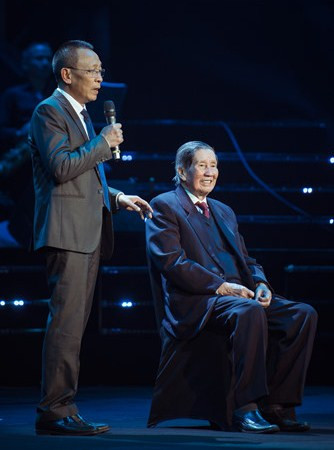Ở tuổi 88, nhạc sĩ Phạm Tuyên không còn khỏe được như trước. Hình ảnh người nhạc sĩ chậm chạp cất từng bước lên sân khấu gây ấn tượng mạnh cho khán giả.