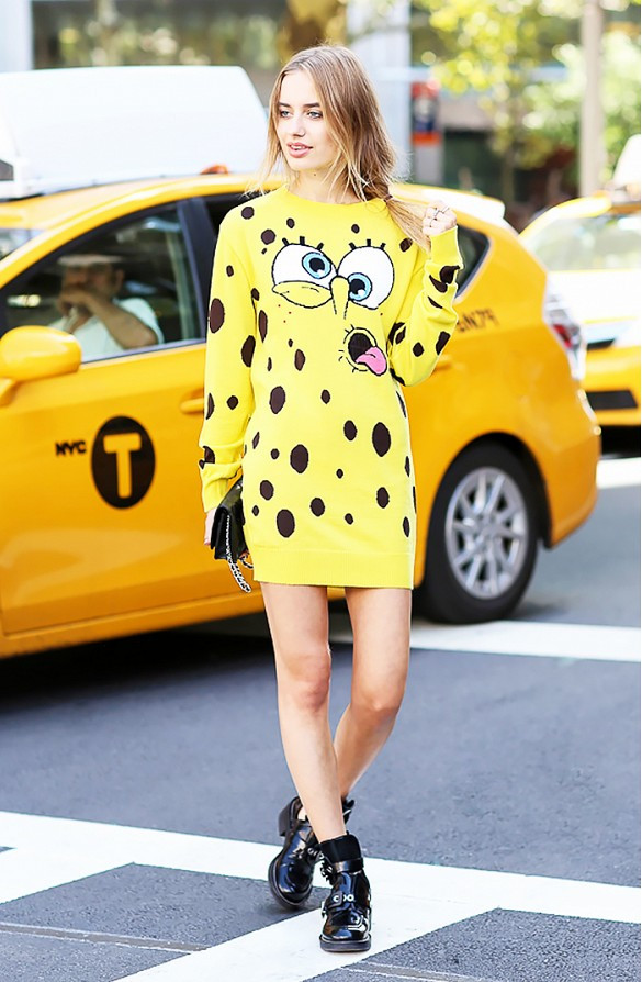 Cô gái trẻ với chiếc váy họa tiết pho mai dễ thương.