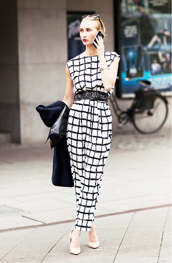 Bộ áo liền quần màu trắng kẻ ô vuông đen cực kỳ đẹp mắt.