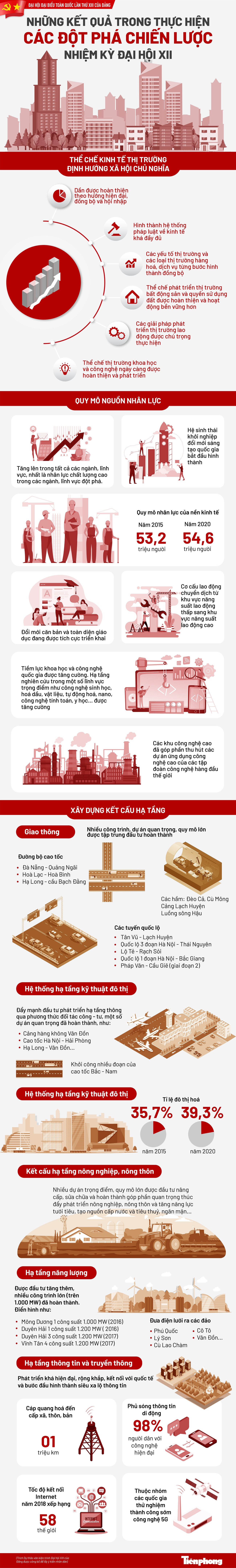 TPO - Trong giai đoạn 2016- 2020, các đột phá chiến lược về thể chế, nguồn nhân lực và cơ sở hạ tầng đạt được nhiều thành tựu quan trọng, góp phần thúc đẩy phát triển kinh tế, xã hội, cải thiện đời sống của người dân.