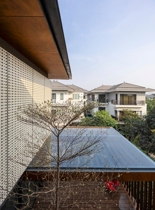 “Tại BT5 Villa, các hiên sâu, các khoảng sân mở không đơn thuần mang tính thẩm mỹ mà là các “bộ lọc vi khí hậu”, cho phép đối lưu không khí, cắt giảm bức xạ mặt trời trực tiếp và điều tiết độ ẩm tự nhiên. Đây là những chiến lược thụ động có tính truyền thống, nhưng được diễn giải lại theo hình thức đương đại.”