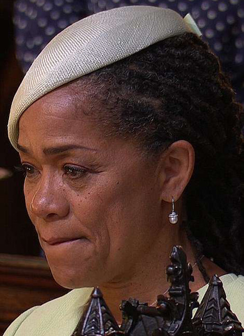 Bà Doria Ragland, 61 tuổi, mẹ của Meghan rơi lệ trong đám cưới con gái. Bà người Mỹ gốc Phi, chuyên gia trị liệu và hướng dẫn viên yoga; bố của Meghan là Thomas Markle, một người da trắng, giám đốc ánh sáng trong show truyền hình Hôn nhân với Trẻ em. Hai người ly hôn đã lâu.