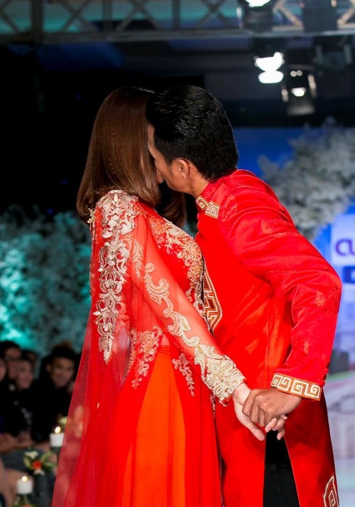 Trong chương trình thời trang vào giữa tháng 10, hai vợ chồng nắm tay catwalk.