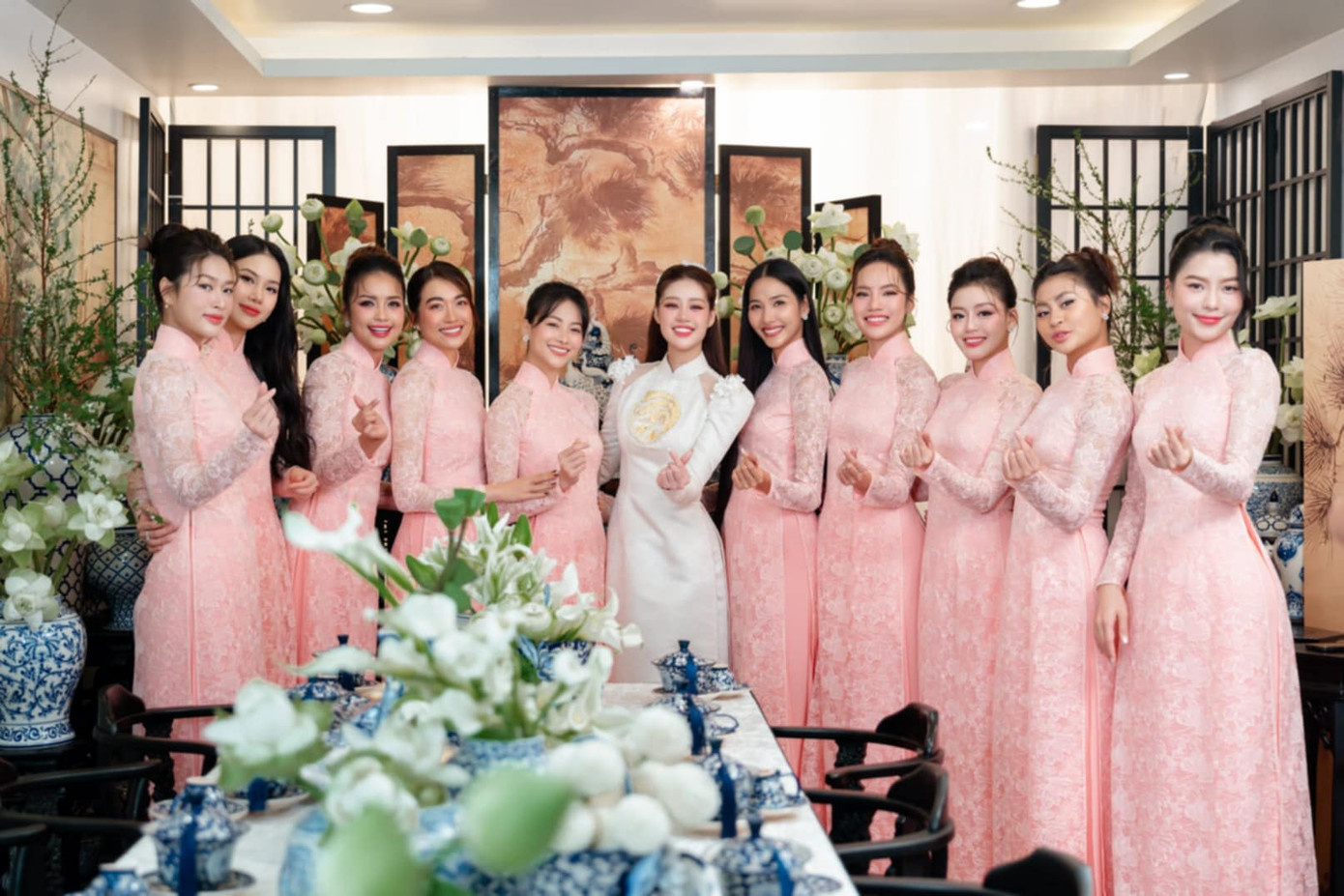 Hoa hậu Khánh Vân đã tổ chức lễ vu quy trong không gian ấm cúng với sự hiện diện của gia đình và bạn bè thân thiết. Dàn phù dâu tham gia lễ vu quy của cô dâu gồm những gương mặt đình đám như Hoa hậu Phương Khánh, Ngọc Châu, Đoàn Thiên Ân, Lê Hoàng Phương, Bùi Quỳnh Hoa, Xuân Hạnh, cùng Á hậu Lệ Hằng, Hoàng Thùy, Đặng Thanh Ngân, và Hoàng Nhung.
