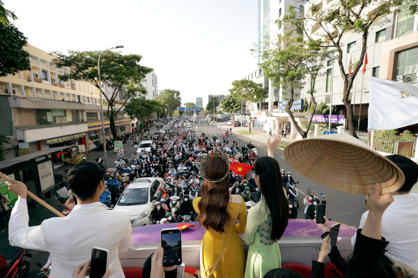 | Chiều ngày 11/1, Hoa hậu Hòa bình Quốc tế Nguyễn Thúc Thùy Tiên đã tham gia buổi roadshow (diễu hành đường phố) - hoạt động được rất nhiều người hâm mộ ở quê nhà chờ đợi. |