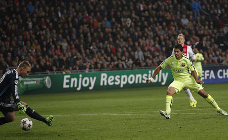 Luis Suarez đã hưởng niềm vui chiến thắng khi ra sân trong màu áo Barca