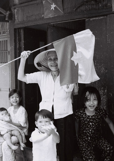 Nhân dân xóm Chiếu khu Tân Thuận, Sài Gòn chào đón đòn quân giải phóng, 30/4/1975