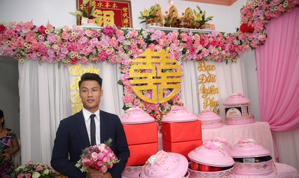 Theo tiết lộ của quản lý của tiền đạo Mạc Hồng Quân, vì mẹ chú rể đang bận công việc ở nước ngoài nên chỉ có bố cùng một số người thân có mặt trong lễ ăn hỏi.