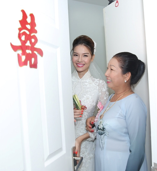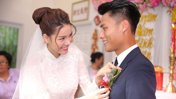 Kỳ Hân rạng rỡ trong trang phục của nhà thiết kế Chung Thanh Phong. Được biết, Mạc Hồng Quân đã sắm cho Kỳ Hân 4 bộ trang phục, trong đó 1 bộ áo dài, 2 váy cưới và 1 bộ đầm ren thanh lịch.