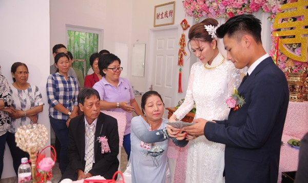Bố mẹ Kỳ Hân trao quà cưới cho hai con là 3000 USD.