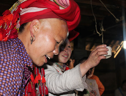 Người Dao đỏ ở Sa Pa nâng chén rượu mời khách. Ảnh: Anh Phương