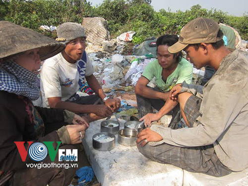 Mặt trời đứng bóng, khi xe rác ngừng hoạt động thì cũng là lúc những người nhặt rác nghỉ tay, họ tranh thủ nhai vội chén cơm giữa bốn bề là rác. Thức ăn chẳng có gì ngoài cơm trắng với rau luộc hay nước tương, cứ thế họ ăn ngon lành, ngấu nghiến để rồi lại bắt tay vào công việc đào bới phế liệu. Xe rác đến, họ buông vội chén cơm, nhanh chóng chạy đến, bắt đầu công việc.