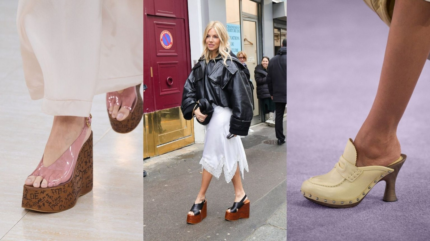 Sàn diễn Chloé đã thành công tái sinh những đôi guốc gỗ giản dị, hay được gọi là giày “Clog” từ những năm 70. Mùa Hè năm nay, những đôi guốc gỗ đế dày, đóng đinh tán một lần nữa thuyết phục các tín đồ thời trang thế hệ mới, cũng như truyền cảm hứng cho nhiều thương hiệu và các nhà thiết kế.