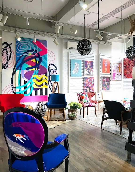 Hồng hạc, hoa tím, ghế đỏ; những vật phẩm này cộng hưởng lại mang tới căn phòng đa sắc màu.