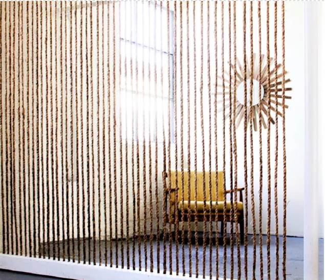 Đây là mẫu tường ngăn vừa đẹp lại dễ làm. Nguyên liệu chính để làm bức tường ngăn này là dây thừng và thanh gỗ