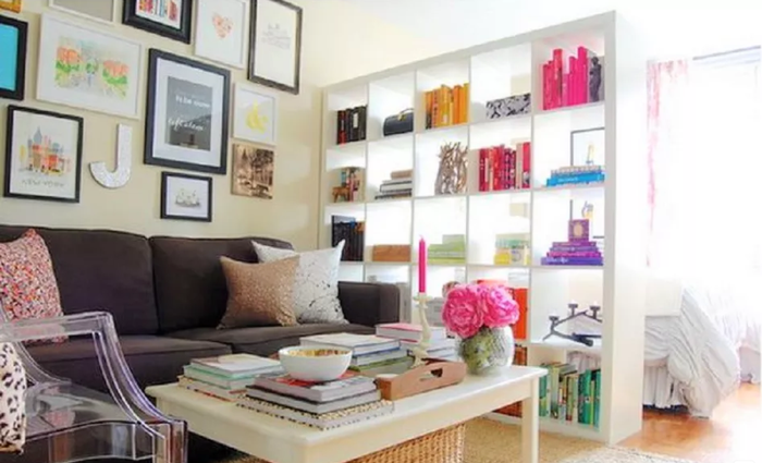 Nếu bạn biết cách, một chiếc giá sách không dùng đến đã có thể trở thành một bức tường ngăn độc đáo.