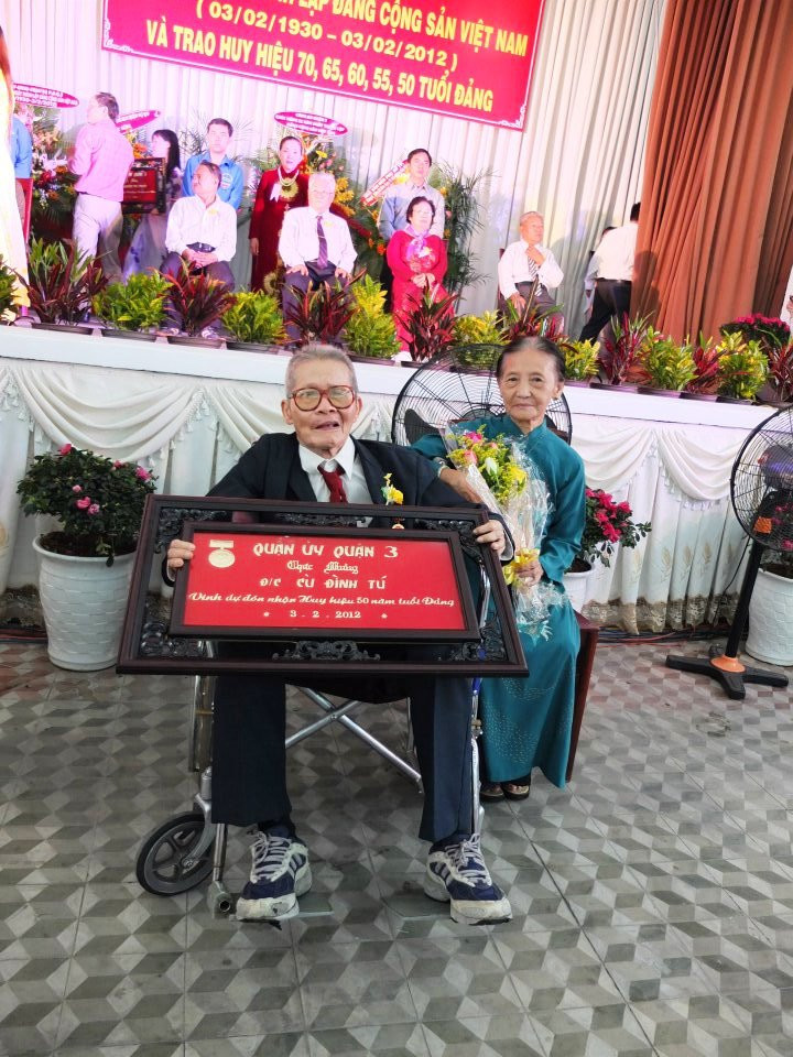 PGS- Nhà giáo ưu tú Cù Đình Tú trong lễ nhận Huy hiệu 50 năm tuổi Đảng