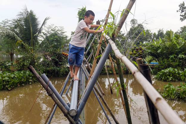 Chiếc cầu khỉ do ông tự làm phía sau nhà để tiện đi thăm ao cá. Rời bỏ binh nghiệp, người anh hùng ngày nào vui thú điền viên miền sông nước. Ông đào ao thả cá, trồng cây trái, sống cuộc đời nông dân chân chất.