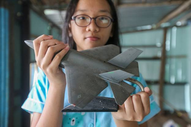 Bé Minh Anh (13 tuổi, cháu nội phi công Nguyễn Văn Bảy) cầm trên tay một mô hình máy bay bằng sắt. Em cho biết ông nội thích sưu tập máy bay mô hình, nhất là những chiếc chiến đấu. Trong hai năm 1966 - 1967, ông đã lái chiếc MiG-17 xuất kích 94 lần, 13 lần nhả đạn và bắn rơi 7 máy bay Mỹ (hai chiếc F-105 và năm chiếc F-4).