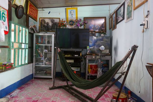 Gian phòng nhỏ cạnh phòng khách là nơi đại tá nằm nghỉ trưa trên võng, xem tivi. Trong tủ kính, trên bàn đặt nhiều kỷ vật gắn bó một thời "làm bạn với bầu trời" của ông.