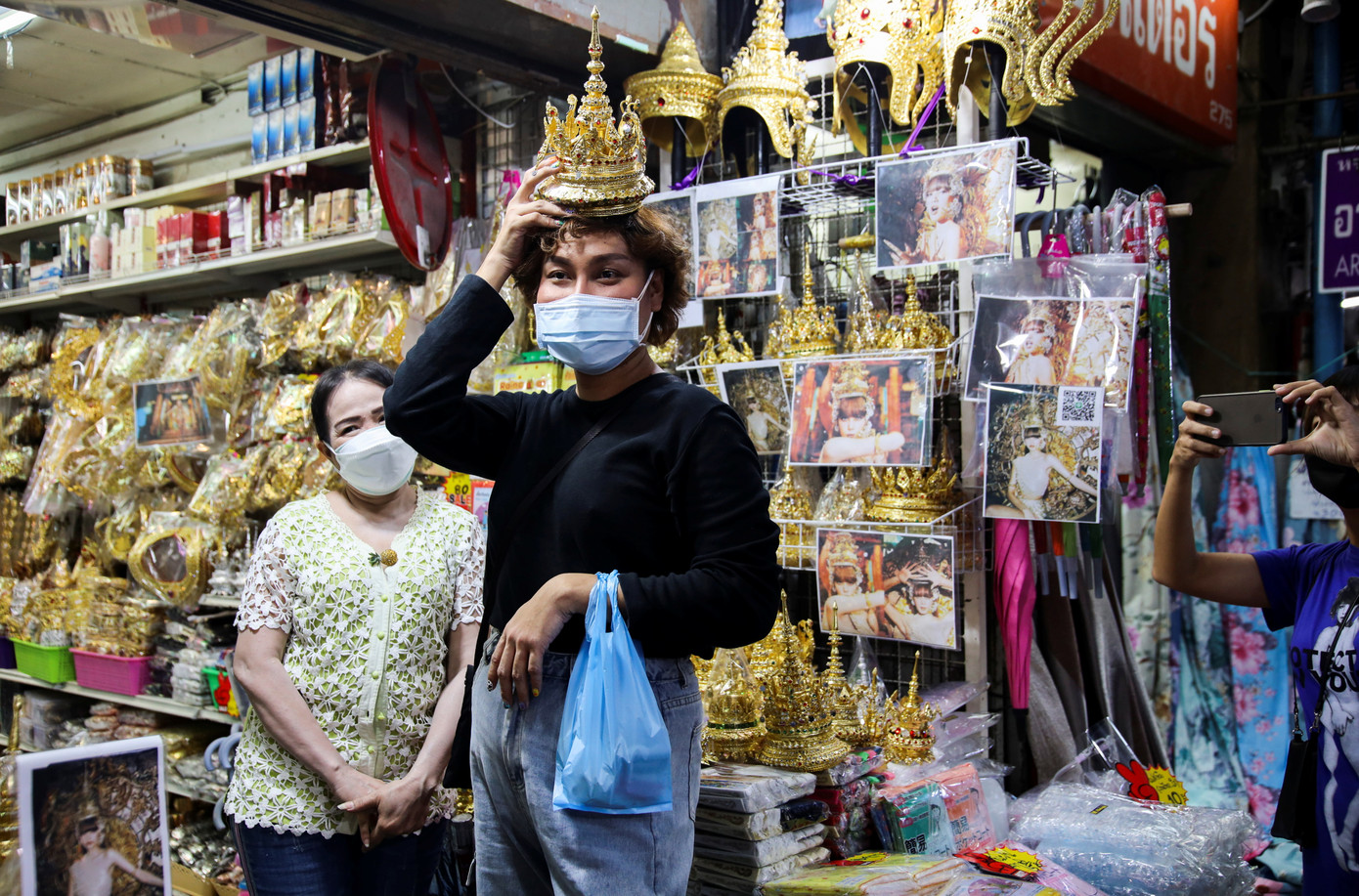 "Rất nhiều người đã đặt hàng qua cửa hàng trực tuyến của chúng tôi. Có một lượng khách hàng liên tục đến và hỏi về các loại mũ đội đầu", cô Samorn Suthiwong, làm việc tại Fashion Point, một cửa hàng quần áo trong một khu chợ nổi tiếng ở Bangkok, Thái Lan cho biết.